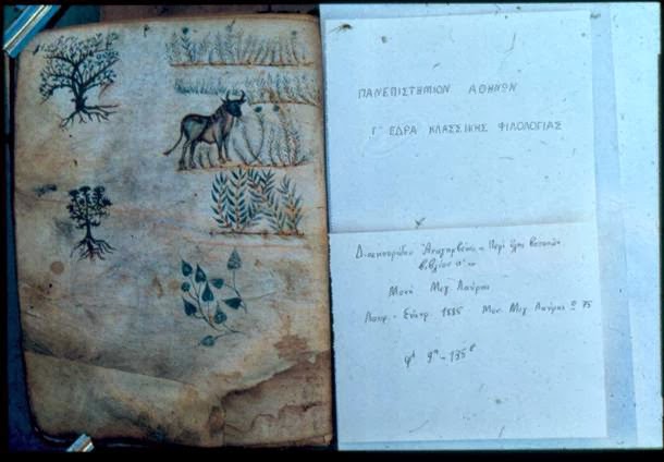 Πάλευε ώρες τώρα μήπως βρει κάποιο στοιχείο να συνδέσει με τις ψηφίδες που έλειπαν από τον Κώδικα του Διοσκουρίδη. Μόνον ένα μέρος των χειρογράφων είχε σωθεί από τη φωτιά που είχε ξεσπάσει παλαιότερα στη μονή.